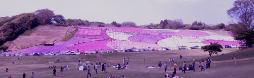 途中、坂面に色採りどりの芝サクラが見えた。規模は広くはないが、やはり気持ちを和ませてくれる。