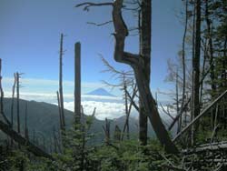 | 富士山が雲の上(中央)だけど判るかな | 五丈岩 テッペンの左には二人いるのだが・・・ |