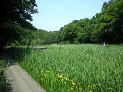 自然観察園内の景色は緑が濃い。 谷津になっており、ここの窪地は水沼である。 遊歩道を歩いて回る。 |