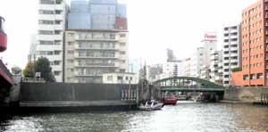 ![]() 船の通行のため、橋の中央が可動橋方式であるが、 昭和55年を最後に開橋廃止となる この辺りは新築ビル群が多い |