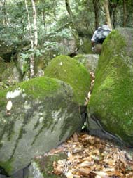 立身岩とは写真上部のこの写真に納まりきらない大きな岩である